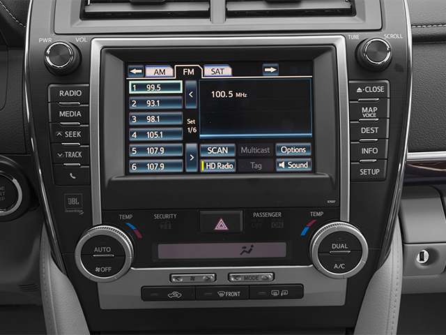- Radio: AM/FM/CD Player w/Display Audio/Nav/Entune -inc: 6.1" touch screen, MP3/WMA playback capability, 6 speakers, SiriusXM Satellite Radio (includes 90-day All-Access trial subscription), HD Radio w/iTunes Tagging, auxiliary audio jack, USB port w/iPod connectivity and control, vehicle information, hands-free phone capability, phonebook access, advanced voice recognition and music streaming via Bluetooth® wireless technology, Entune includes Bing, iHeartRadio, MovieTickets.com, OpenTable and Pandora; real-time info including traffic, weather, fuel prices, sports and stocks, Access to Entune services is subscription free, See Toyota.com/Entune for details