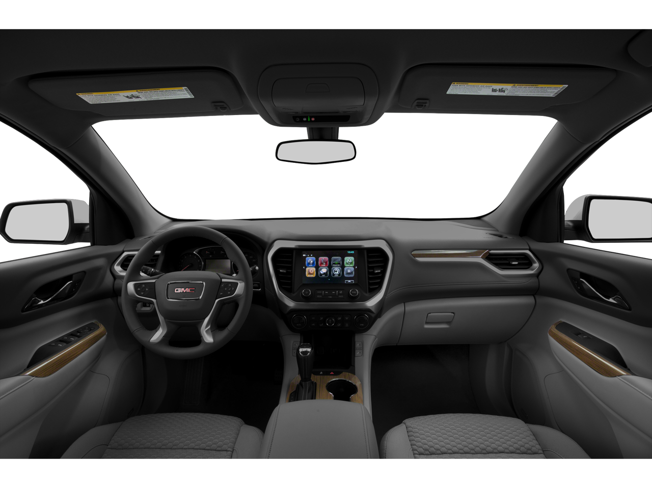 FWD, Jet Black Leather, 155 Amp Alternator, 18 x 7.5 Aluminum (4) Wheels, 3rd row seats: split-bench, 4-Wheel Disc Brakes, 6-Passenger (2-2-2 Seating Configuration), 8 Speakers, 8-Way Power Front Passenger Seat Adjuster, ABS brakes, Air Conditioning, Alloy wheels, AM/FM radio: SiriusXM, Apple CarPlay/Android Auto, Auto-dimming door mirrors, Auto-dimming Rear-View mirror, Automatic temperature control, Bose Premium 8-Speaker System, Brake assist, Bumpers: body-color, Compass, Delay-off headlights, Driver door bin, Driver vanity mirror, Dual front impact airbags, Dual front side impact airbags, Electronic Stability Control, Emergency communication system: OnStar and GMC connected services capable, Exterior Parking Camera Rear, Four wheel independent suspension, Front anti-roll bar, Front Bucket Seats, Front Center Armrest, Front dual zone A/C, Front fog lights, Front reading lights, Fully automatic headlights, Garage door transmitter, Heated door mirrors, Heated Driver & Front Passenger Seats, Heated front seats, Illuminated entry, Knee airbag, Low tire pressure warning, Occupant sensing airbag, Outside temperature display, Overhead airbag, Overhead console, Panic alarm, Passenger door bin, Passenger vanity mirror, Perforated Leather-Appointed Seat Trim, Power door mirrors, Power Driver Lumbar Control Seat Adjuster, Power driver seat, Power Liftgate, Power Passenger Lumbar Control Seat Adjuster, Power passenger seat, Power steering, Power windows, Preferred Equipment Group 4SA, Premium audio system: GMC Infotainment System, Radio data system, Radio: AM/FM w/8 Diagonal Color Touch Screen, Radio: AM/FM w/8 Diagonal Color Touch Screen & Nav, Rear air conditioning, Rear anti-roll bar, Rear reading lights, Rear window defroster, Rear window wiper, Remote keyless entry, Roof rack: rails only, Security system, SiriusXM Radio, Speed control, Speed-sensing steering, Spoiler, Steering wheel mounted audio controls, Stop-Start Engine Control System, Tachometer, Telescoping steering wheel, Tilt steering wheel, Traction control, Trip computer, Variably intermittent wipers, Voltmeter, FWD, Jet Black Leather.