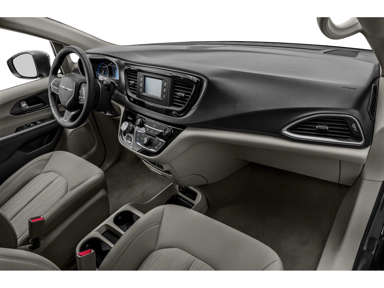 17 x 7.0 Aluminum Wheels, 1st Row Soft Seatback, 3.25 Axle Ratio, 3rd row seats: split-bench, 4-Wheel Disc Brakes, 6 Speakers, ABS brakes, Air Conditioning, Alloy wheels, AM/FM radio: SiriusXM, Apple CarPlay, Apple CarPlay/Android Auto, Auto-dimming Rear-View mirror, Automatic temperature control, Black Badging, Black Chrysler Grille Wing Badge, Black Day Light Opening Moldings, Black Seats, Black Spear Rear Fascia Applique, Blind Spot & Rear Cross Path Detection, Body Color Door Handles, Brake assist, Bridgestone Brand Tires, Bumpers: body-color, Cloth Bucket Seats, Cloth Bucket Seats w/S Logo, Compass, Delay-off headlights, Driver door bin, Driver vanity mirror, Driver's Seat Mounted Armrest, Dual front impact airbags, Dual front side impact airbags, Electronic Stability Control, Emergency communication system: Uconnect Access, Falken Brand Tires, Four wheel independent suspension, Front anti-roll bar, Front Bucket Seats, Front dual zone A/C, Front fog lights, Front reading lights, Fully automatic headlights, Garage door transmitter, Google Android Auto, GPS Antenna Input, Heated door mirrors, Illuminated entry, Integrated Voice Command w/Bluetooth®, Knee airbag, Leather Wrapped Steering Wheel, Low tire pressure warning, MOPAR Single Overhead DVD System, Occupant sensing airbag, Outside temperature display, Overhead airbag, Overhead console, Panic alarm, ParkView Rear Back-Up Camera, Passenger door bin, Passenger seat mounted armrest, Passenger vanity mirror, Power door mirrors, Power driver seat, Power Liftgate, Power steering, Power windows, Premium Fascia Upper/Lower Grille w/Black Surround, Quick Order Package 27W, Radio data system, Radio: Uconnect 4 w/7 Display, Rear air conditioning, Rear reading lights, Rear window defroster, Rear window wiper, Reclining 3rd row seat, Remote keyless entry, S Appearance Package, S Badge, Security system, SiriusXM Satellite Radio, Speed control, Split folding rear seat, Spoiler, Steering wheel mounted audio controls, Tachometer, Telescoping steering wheel, Tilt steering wheel, Touring Suspension, Traction control, Trip computer, USB Host Flip, Variably intermittent wipers, Voltmeter, Wheels: 18 x 7.5 Aluminum Black Noise, Wheels: 20 x 7.5 Aluminum Black Noise.