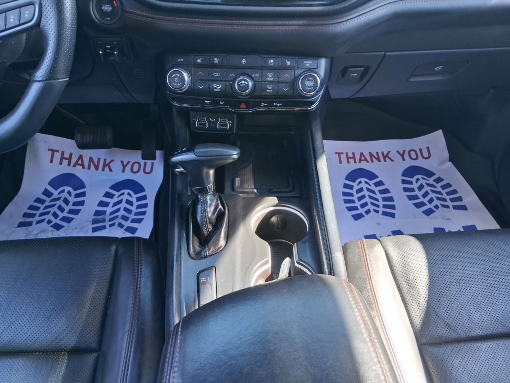 AWD, 115V Auxiliary Power Outlet, 3.09 Rear Axle Ratio, 3rd row seats: split-bench, 4-Wheel Disc Brakes, 7 & 4 Pin Wiring Harness, 9 Speakers, ABS brakes, Adaptive Cruise Control w/Stop, Air Conditioning, Alloy wheels, AM/FM radio: SiriusXM w/360L, Apple CarPlay/Android Auto, Auto High-beam Headlights, Auto-Dimming Exterior Driver Mirror, Auto-dimming Rear-View mirror, Auto-leveling suspension, Automatic temperature control, Black Roof Rails, Blacktop Package, Brake assist, Bumpers: body-color, Class IV Receiver Hitch, Cloth Bucket Seats w/Shift Insert, Compass, Delay-off headlights, Driver door bin, Driver vanity mirror, Dual front impact airbags, Dual front side impact airbags, Dual Remote USB Port - Charge Only, Electronic Stability Control, Emergency communication system: SiriusXM Guardian, Exterior Mirrors w/Heating Element, Exterior Mirrors w/Memory, Exterior Mirrors w/Supplemental Signals, Floor Console w/Leather Armrest, Four wheel independent suspension, Front anti-roll bar, Front Bucket Seats, Front Center Armrest w/Storage, Front dual zone A/C, Front reading lights, Full Speed Forward Collision Warning Plus, Fully automatic headlights, Garage door transmitter, Gloss Black Badges, Gloss Black Exterior Mirrors, Heated door mirrors, Heated front seats, Heated Second Row Seats, Heated steering wheel, Illuminated entry, Integrated Roof Rail Crossbars, Knee airbag, Leather steering wheel, Leather Trimmed Bucket Seats, Leather Wrapped Door Panels, LED Auxiliary Low Beam & Turn Signal, Low tire pressure warning, Navigation system: TomTom, Occupant sensing airbag, Outside temperature display, Overhead airbag, Overhead console, Panic alarm, ParkView Rear Back-Up Camera, Passenger door bin, Passenger vanity mirror, Power 6x9 Multi-Function Foldaway Mirrors, Power 8-Way Driver Memory 8-Way Passenger Seats, Power door mirrors, Power driver seat, Power Driver/Passenger 4-Way Lumbar Adjust, Power Liftgate, Power steering, Power Sunroof, Power Tilt & Telescopic Steering Column, Power windows, Premium LED Fog Lamps, Quick Order Package 22T R/T Plus, Radio data system, Radio: Uconnect 5 Nav w/10.1 Display, Radio/Driver Seat/Mirrors Memory, Rain sensing wipers, Rear air conditioning, Rear anti-roll bar, Rear Load Leveling Suspension, Rear reading lights, Rear seat center armrest, Rear window defroster, Rear window wiper, Red Accent Stitching, Remote keyless entry, Satin Black Dodge Tail Lamp Badge, Security system, Speed control, Speed-sensing steering, Speed-Sensitive Wipers, Split folding rear seat, Spoiler, Sport steering wheel, Steering wheel mounted audio controls, Tachometer, Telescoping steering wheel, Tilt steering wheel, Traction control, Trailer Brake Control, Trip computer, Variably intermittent wipers, Ventilated Front Seats, Voltmeter, Wheels: 20 x 8.0 Black Noise Aluminum, Wheels: 20 x 8.0 Fine Silver, AWD.